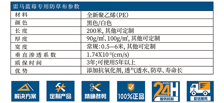 用途:用于蓝莓、草莓、葡萄等各种大棚膜设施及露天覆盖栽培,有效防止杂草。