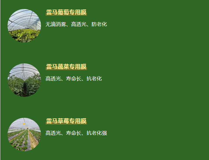 此次展出的主要产品有中欧体育散光膜、中欧体育葡萄种植西昌专用膜、中欧体育蔬菜专用膜、中欧体育水池布、中欧体育防草地布、中欧体育草莓专用膜。